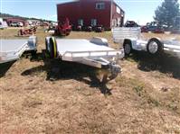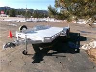 REDUCED: 2026 14' aluminum car hauler by Aluma (Model 8214), measures 81” x 172”, front retaining rail, 6’ rear ramps in pockets, removable fenders, 4 5000# recessed tie rings, 6 stake pockets (3 per ...