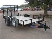 END OF FLOORING - CLEARANCE SALE: 2025 12' single axle utility trailer by Liberty Trailer, measures 78” wide x 12’ length, rear 4’ ramp, 3500# axle with lube hubs, 2K jack, 2” coupler with chains, ...