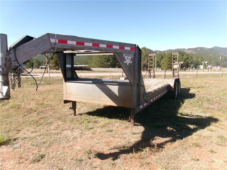 REDUCED: 24’ Gooseneck flatbed equipment trailer by PJ Trailers (2002), trailer measures 82” W x 24’L (wood deck), rear up ramps, gooseneck coupler, toolbox, dual drop leg jack, rub rail, stake pockets, GVWR = 14,000, 16" tires with spare in GN. This trailer is in excellent shape – clean title. It is ready for hauling.