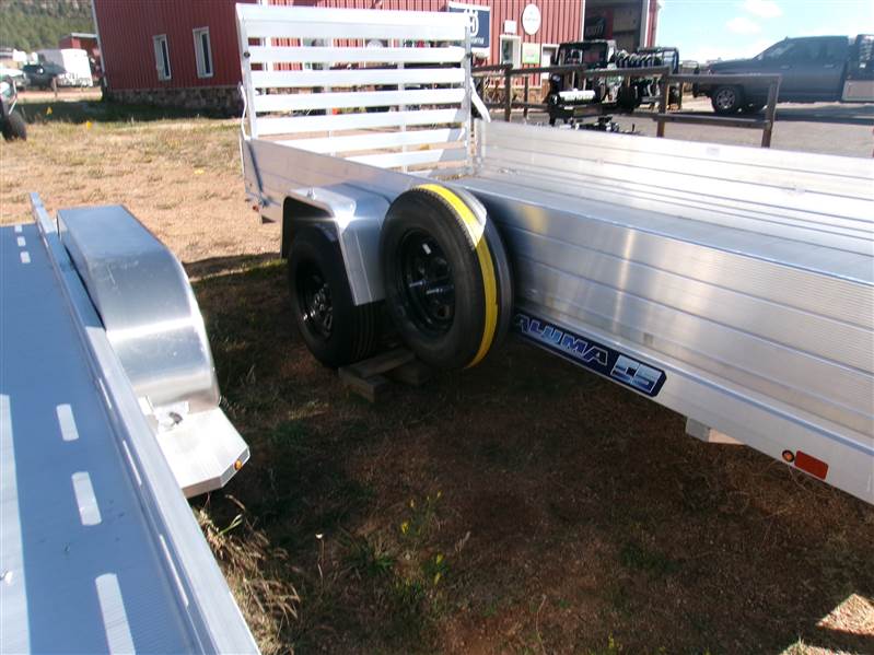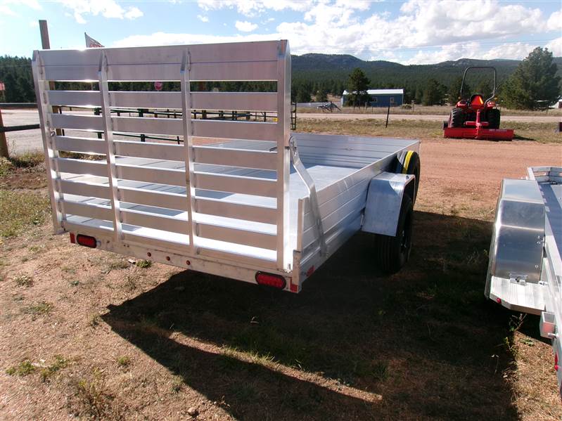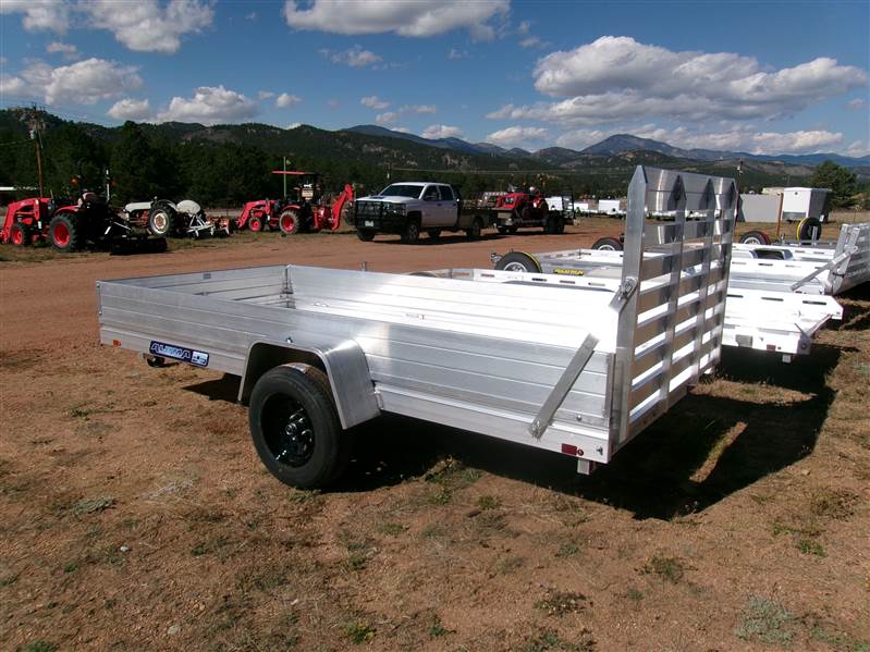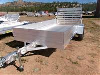 REDUCED: 2026 12’ aluminum utility trailer by Aluma (Model 6812H-ESA), measures 69"W X 147"L, full rear tailgate, 7” HD frame rail, 12” solid side and front rails, 4 tie down loops (2 per side), LED lights, swivel tongue jack, 14" radial tires with steel wheels, matching spare and side mount, 3500# torsion axle with easy lube hubs, GVWR = 2990, payload – 2350# (trailer weight - 640#), Aluma exclusive 5 year frame warranty.