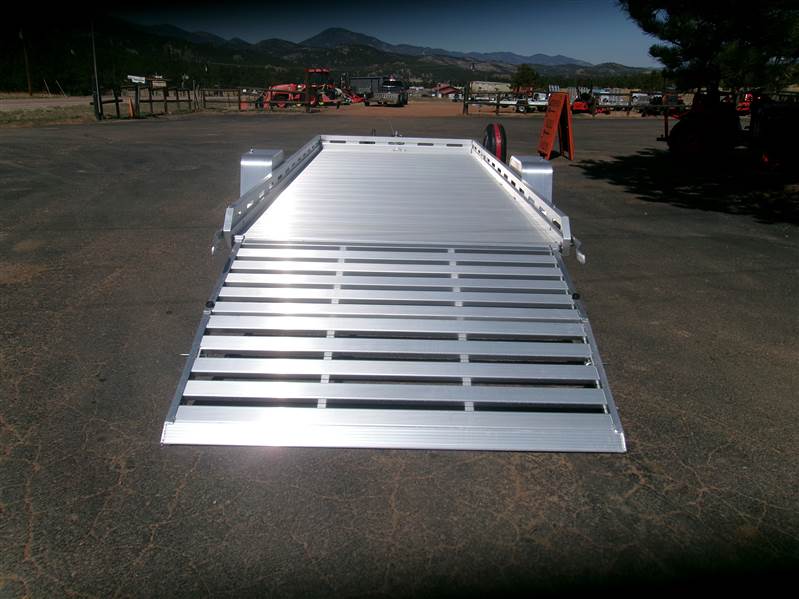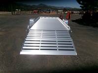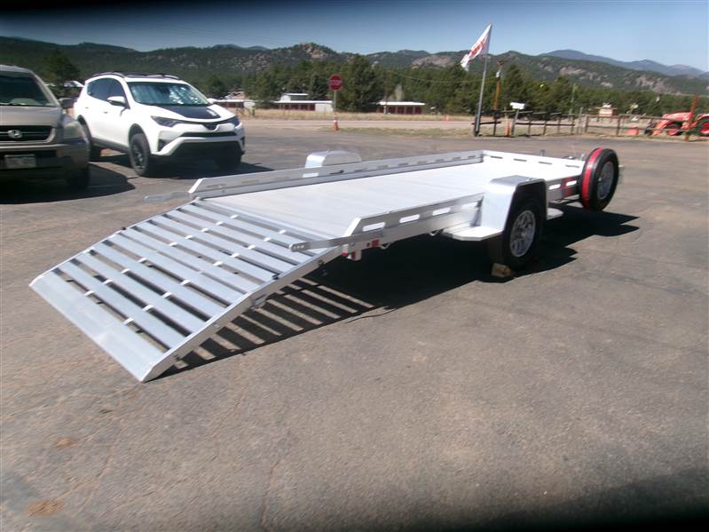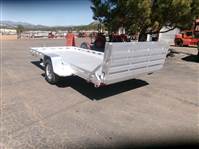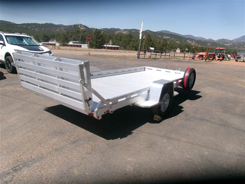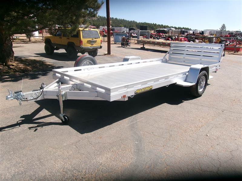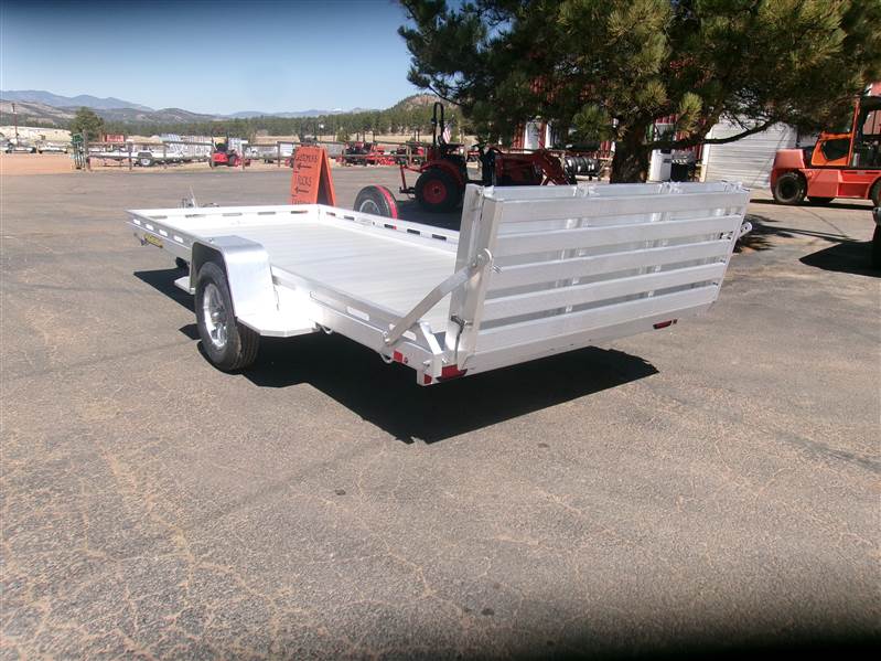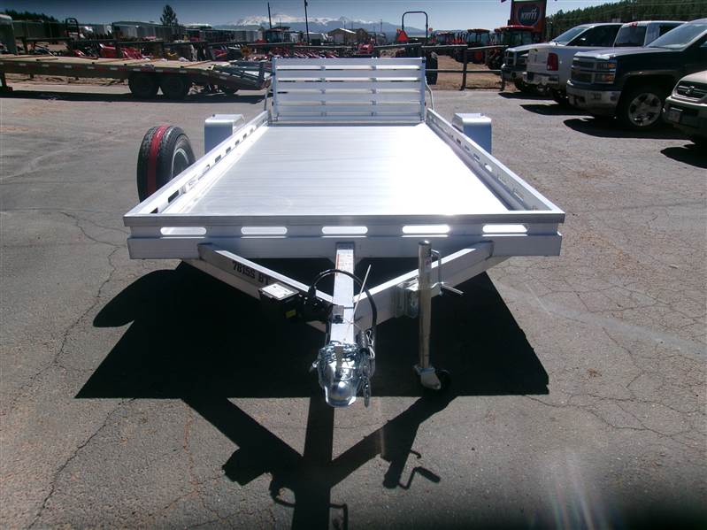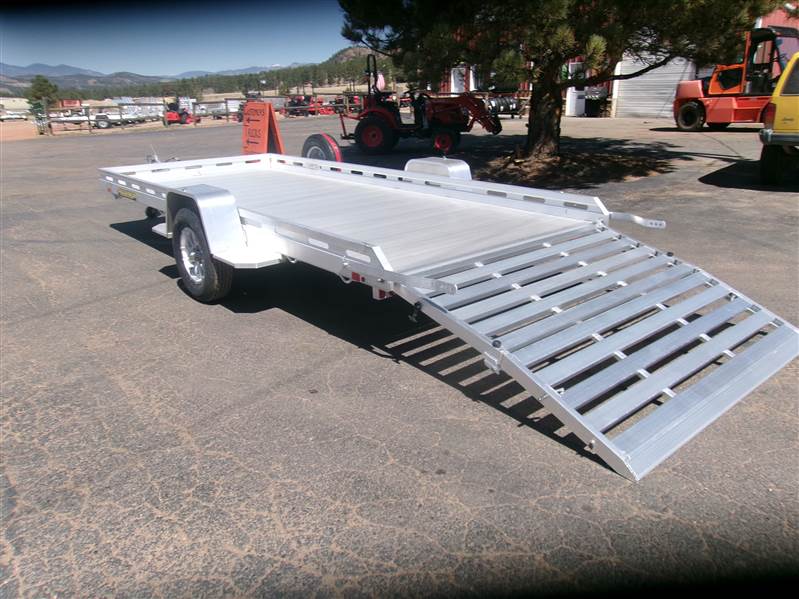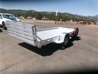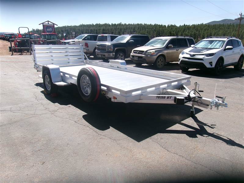 REDUCED: 2026 15' aluminum utility trailer (Model 7815S-BT by Aluma), 77.5"W x 182”L, 8.5” front and side retaining rails, rear bifold tailgate (60” long), 9 tie down loops (4 per side and 1 in center), LED lights, tongue handle, fender steps, 15" radial tires with aluminum wheels, matching spare and mount, 4400# rubber torsion axle with easy lube hubs, electric brakes on axle, GVWR = 4250, payload – 3430# (trailer weight - 820#), Aluma exclusive 5 year warranty.