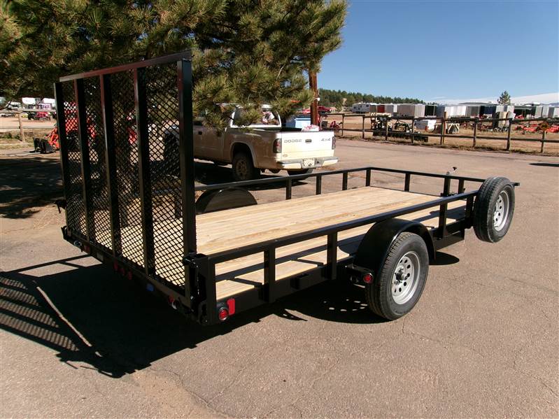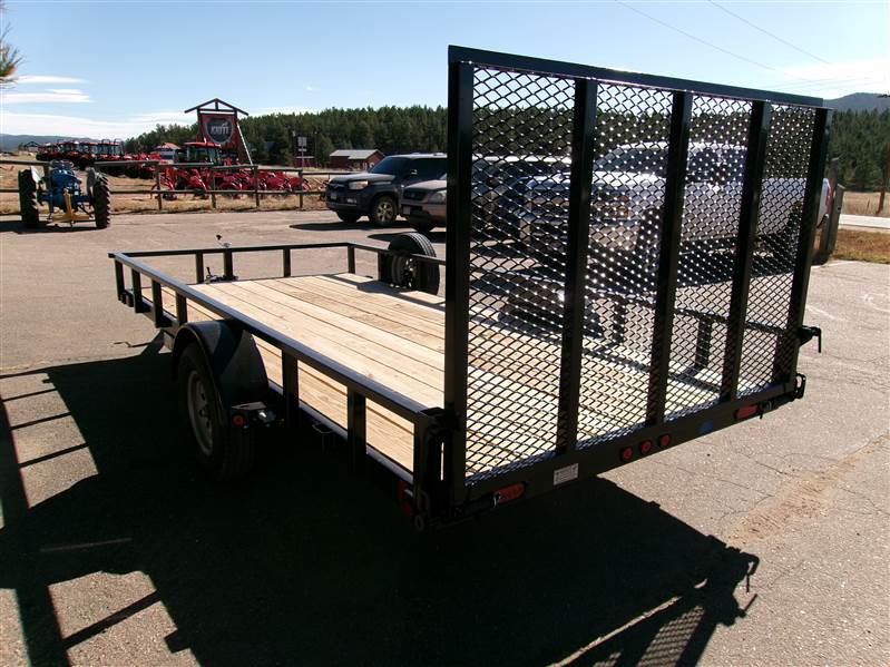 REDUCED: 2026 14' single axle utility trailer by Liberty Trailer, measures 83” wide x 14’ length, rear single tailgate ramp, 7K set back jack, 2” coupler with chains, 6 stake pockets (3 per side), 3500# axle with easy lube hubs, GVWR - 2990#, Payload = 1740# (trailer weight 1250#), 15" radial tires (205 75 R15), matching spare tire with mount, one year manufacturer warranty, Color = Black and Battleship Grey. This is a nice looking, well-built utility trailer!