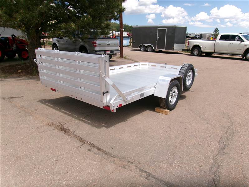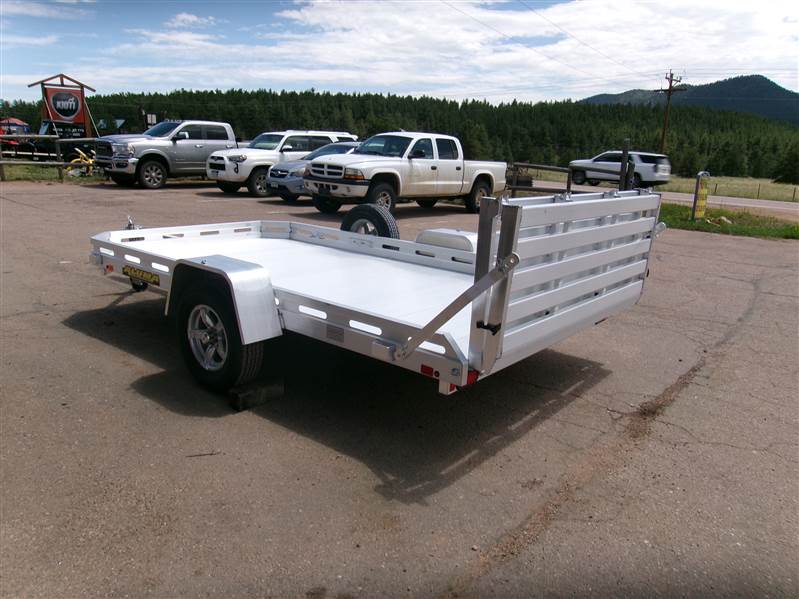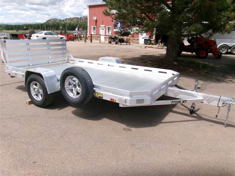 REDUCED PLUS FREE MATCHING SPARE AND MOUNT: 2026 12’ aluminum utility trailer by Aluma (Model 7712H-BT), measures 77"W X 142"L, 8.5” front and side retaining rail, rear bifold tailgate, 4 stake pockets (2 per side), 4 tie down loops (2 per side), LED lights, 14" radial tires with aluminum wheels, FREE matching spare and mount, GVWR = 2990, payload – 2340# (trailer weight - 650#), Aluma exclusive 5 year warranty.