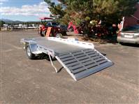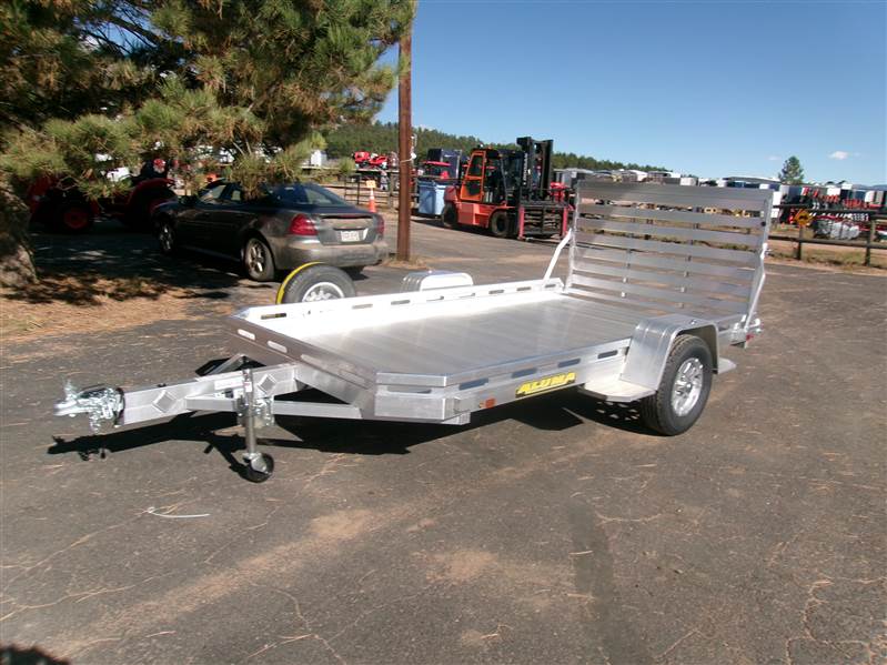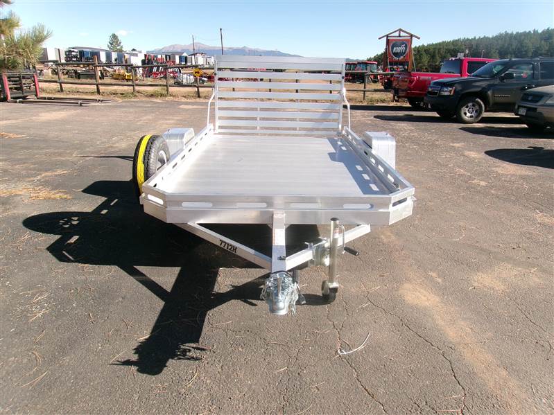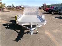 REDUCED: 2026 12’ aluminum utility trailer by Aluma (Model 7712H), measures 77"W X 142"L, 8.5” front and side retaining rail, 44” full rear tailgate, 4 stake pockets (2 per side), 4 tie down loops (2 per side), LED lights, 14" radial tires with aluminum wheels, matching spare and mount, GVWR = 2990, payload – 2340# (trailer weight - 650#), Aluma exclusive 5 year warranty.