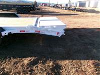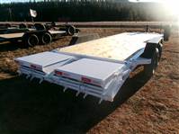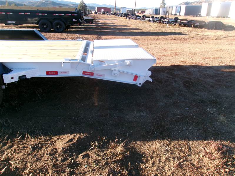 REDUCED: 22’ Flatbed equipment trailer by Liberty Trailer, trailer measures 83” W x 19’ plus 3’ folding ramps, tandem 7000# axles with easy lube hubs, electric brakes on both axles, 8” I-beam frame and tongue, A-Frame 2 5/16 adjustable coupler with chain hooks, 12K jack, rub rail and stake pockets, 6 D rings, oversized tongue toolbox, skid steer fork storage pockets, LED lights, treated pine decking, GVWR = 15,400#, Payload = 11,580# (trailer weight 3820#), 16" radial 10 ply tires (235 80R16), matching spare tire plus mount, 1 year Liberty warranty, color = star spangled white.