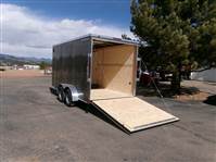 FAST TRAC TRAILER SPECS: Floor Frame: 16” O/C; Entire Chassis Undercoated; 32” Wide Side Door; Vertical Post Frame: 16” O/C; 3/4” PlexCore Decking; .030 Aluminum Exterior –screws; Roof Bows: 24” O/C; 3/8” PlexCore Sidewall Liner; Roof: 1 piece Aluminum; Axle: Spring and E-Z Lube Hubs; Warranty: 1 year.