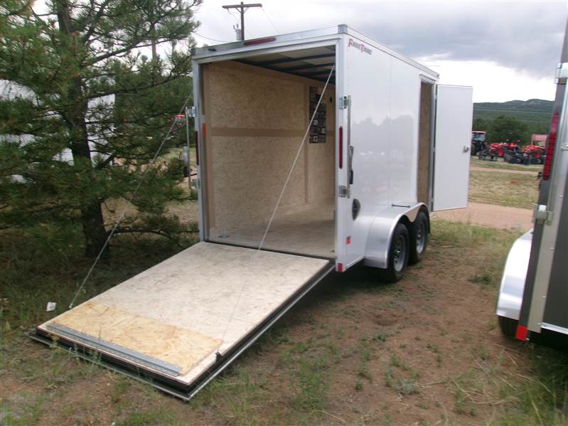 FAST TRAC TRAILER SPECS: Floor Frame: 16” O/C; Entire Chassis Undercoated; 32” Wide Side Door; Vertical Post Frame: 16” O/C; 3/4” PlexCore Decking; .030 Aluminum Exterior – screws; Roof Bows: 24” O/C; 3/8” Sidewall Liner; Roof: 1 piece Aluminum; Axle: Spring and E-Z Lube Hubs; Warranty: 1 year.