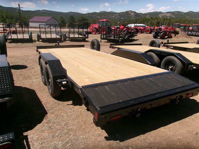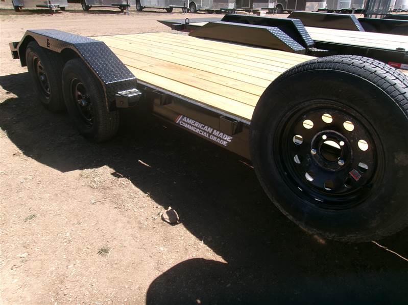 REDUCED PLUS FREE SPARE AND MOUNT: 2026 18’ Flatbed by Liberty Trailer, trailer measures 83” W x 18’L (16' flat deck and 2' dovetail), tandem 3500# axles with easy lube hubs, toolbox, stake pockets, LED lights, treated pine decking, electric brakes on both axles, A Frame 2 5/16 Adjustable Coupler, 7K drop leg jack, pull out pocket ramps, GVWR = 7000#, Payload = 4900# (trailer weight 2100#), 15" radial tires (205 75R15), FREE matching spare tire and mount, 1 year manufacturer warranty by Liberty.