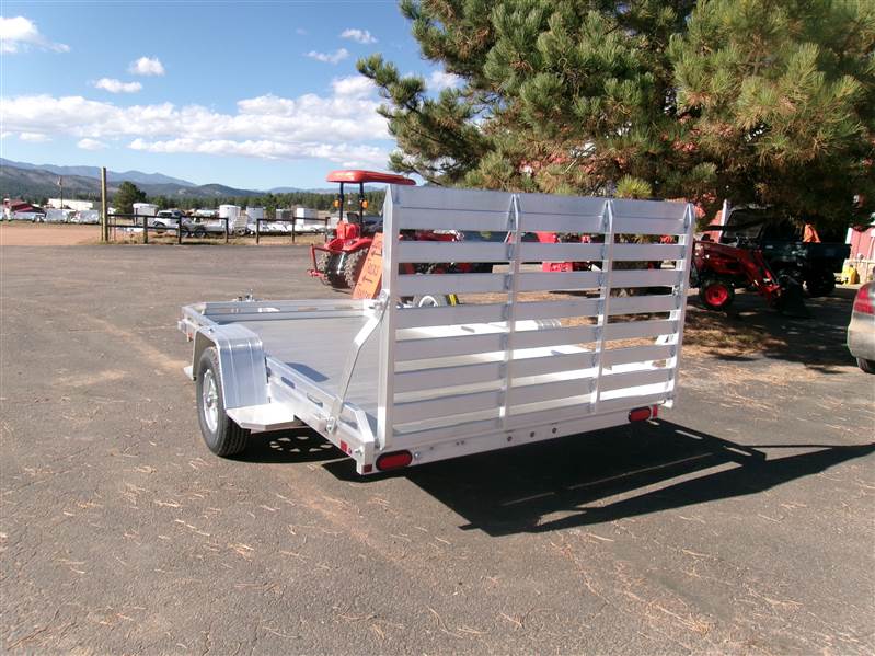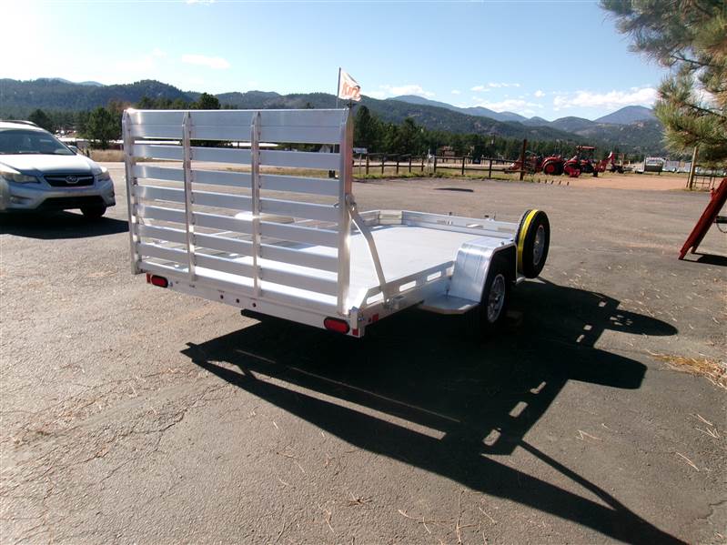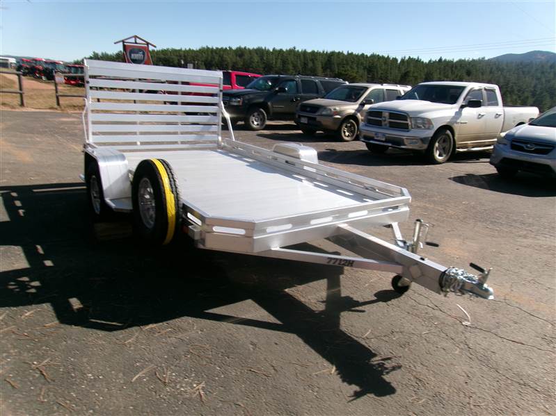 2027 12’ aluminum utility trailer by Aluma (Model 7712H-S-TG), measures 77"W X 142"L, 8.5” front and side retaining rail, 44” full rear tailgate, 4 stake pockets (2 per side), 4 tie down loops (2 per side), tongue handle, fender steps, LED lights, 3500# rubber torsion axle with easy lube hubs, 14" radial tires with aluminum wheels, matching spare and mount, GVWR = 2990, payload – 2340# (trailer weight - 650#), Aluma exclusive 5 year warranty.
