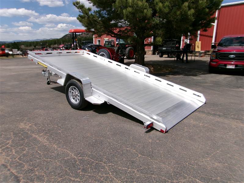 REDUCED: 2027 15' Aluminum Utility trailer (Model 8015STILT), 81"W x 182”L, 8.5” front and side retaining rail, , 4400# torsion axle with easy lube hubs, electric brakes on axle, tilt lock out kit, hydraulic dampener with gas lift, 9 tie down loops (4 per side and 1 in front), tongue handle, fender steps, LED lights, 15" radial tires with aluminum wheels, matching spare and mount GVWR = 4250, payload – 3288# (trailer weight - 962#), Aluma exclusive 5 year warranty.